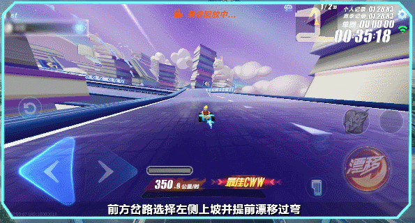属意前哨支路,摄取左侧上坡并提前向左侧身漂移过弯,找准路子踩上两个加快带起到提速后果。